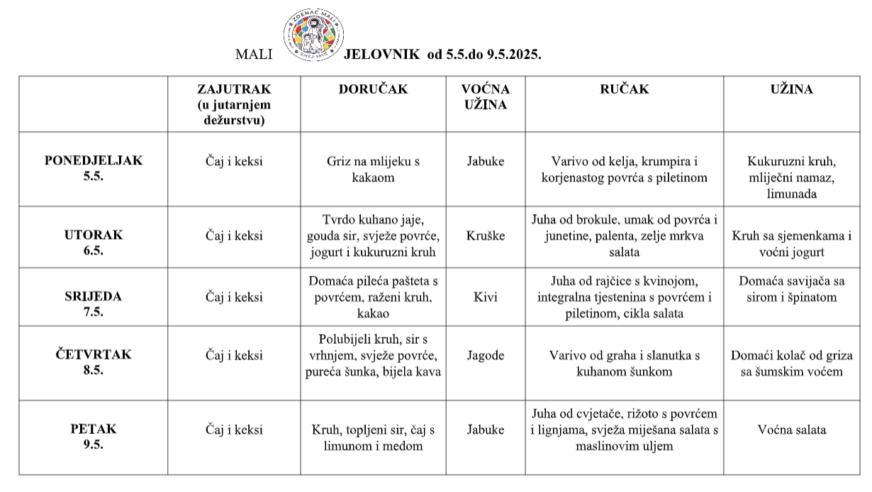 Jelovnik 5.5. – 9.5.2025.