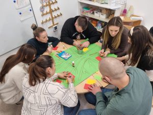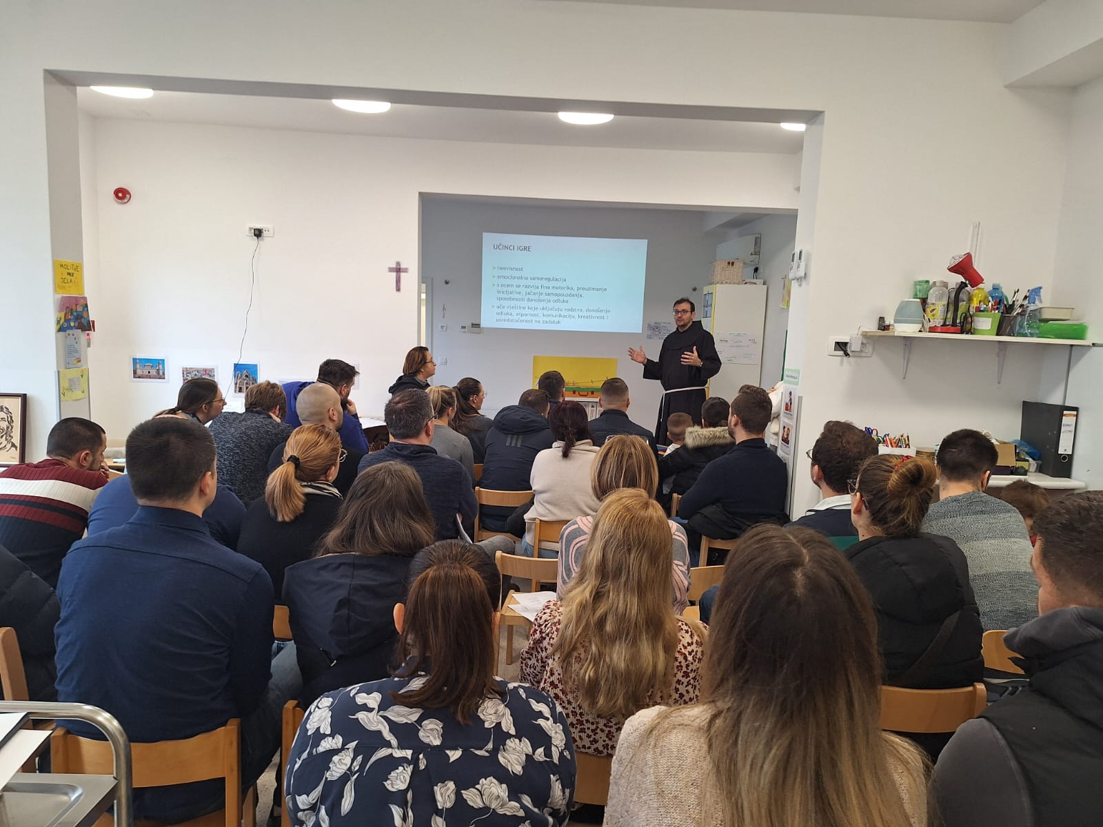 Dana 30.11.2024. održan je mjesečni susret s obiteljima, ovoga puta sudjelovali su samo roditelji. Susret se održao u prostoru Vrtića od 10 do 13.30h. Pegagoginja Vesna Marić održala je interaktivno predavanje i radionicu “Roditelj kao model i uzor svome djetetu”. Svaka skupina je izrađivala plakat “Drvo snaga roditeljstva” koji će biti svakodnevno izložen na vidljivo mjesto u vrtiću. Roditelji aktivno sudjeluju, razmjenjuju iskustva, propitkuju, traže savjete. U drugom dijelu voditeljica predavanja bila je s.Ljilja Lončar, Misionarka Milosrđa, prof.relig.znanosti. Važan dio predavanja bilo je Evanđelje navještaja Isusova rođenja te pohoda Marijina Elizabeti. Roditelji su aktivno promišljali o roditeljskoj viziji i Božjoj viziji za svoju djecu. Sestra Ljilja je iznijela viziju i misiju DV Zdenac Mali. U završnom dijelu susreta svjedočanstvo o konkretnim djelima milosrđa u svojem okruženju iznijela je Snježana Tišljarić, volonterka udruge Zdenac, odgojiteljica iz Koprivnice.